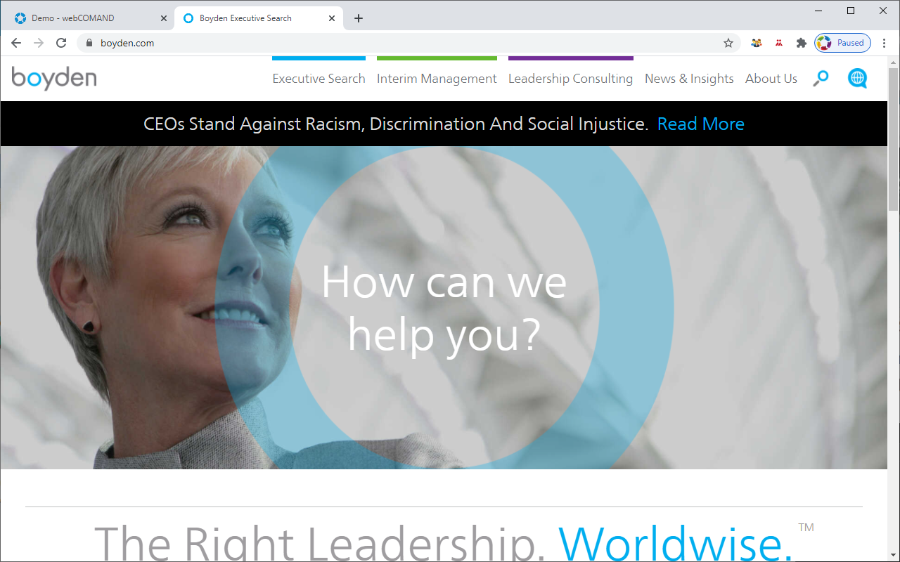 Through webCOMAND, Boyden was able to create more than 65 individual websites – all with a unified look and feel – and manage them in one place, giving different levels of access to different users.